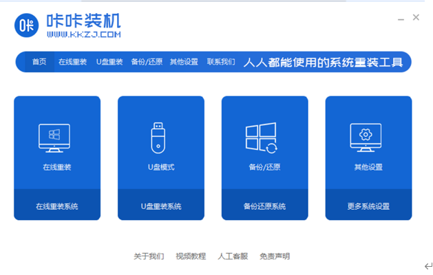 1、百度搜序官网下载咔咔装机软件,安装并运行,选择U盘重装系统。