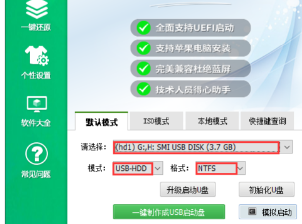 3.点击USB-HDD和NTFS,一键制作USB启动盘。