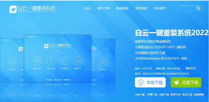 1、首先,我们在白云一键重装系统官网,下载白云U盘启动制作工具;