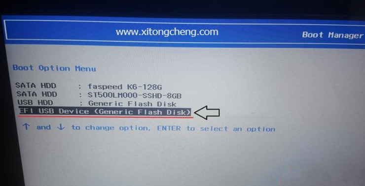 3、等待调出启动菜单,选择识别到的U盘启动项按回车键进入即可。