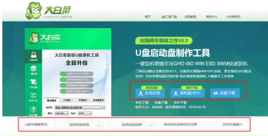 借助大白菜U盘启动盘制作工具完成重装系统。