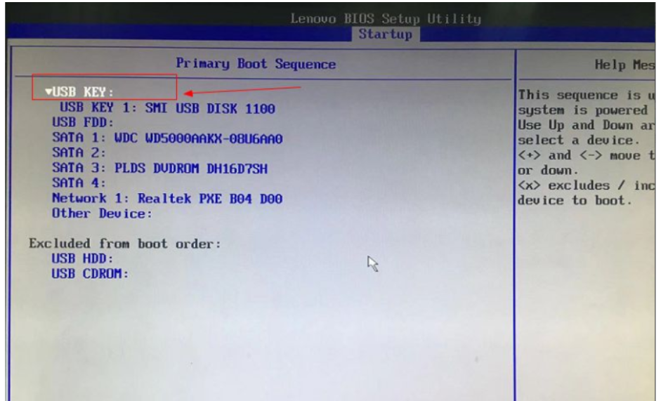 5.将usb key 设置为第一个,有些电脑可以能是"usb HDD".