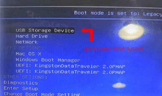 2、重启电脑,出现开机画面时,通过U盘启动快捷键进入启动设置界面,选中U盘,回车就可以进入大白菜winpe 界面。