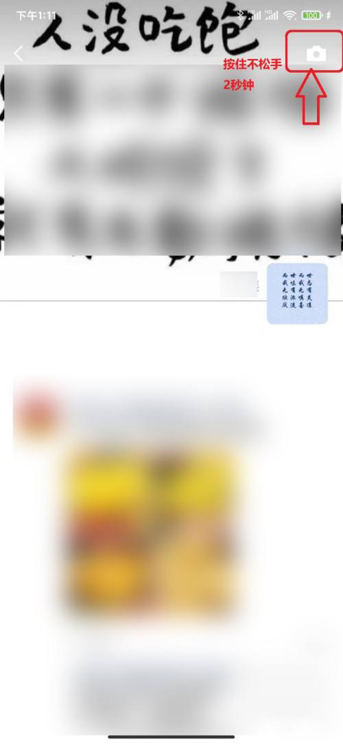 3、在弹出的页面上,手指按住右上角的相机标志2秒钟以上不松手。