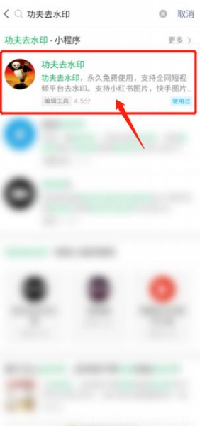 3、在微信查找去水印小程序(选择一个你认为好的),小编这里使用“功夫去水印小程序。