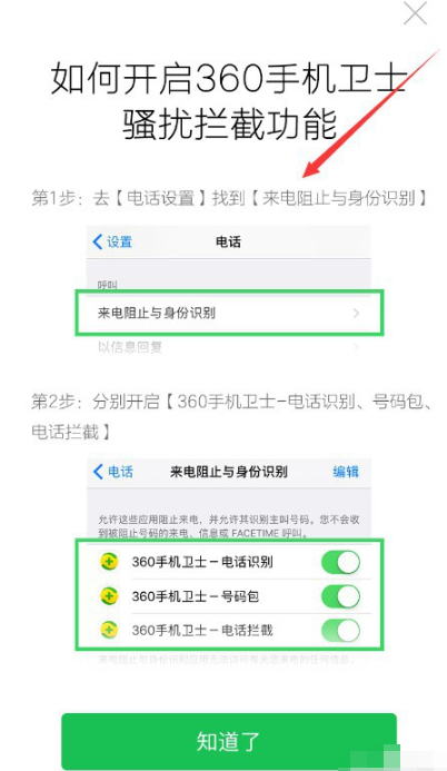 4、然后按照图中的步骤进行操作就可以了,它可以有效的拦截各类骚扰电话。