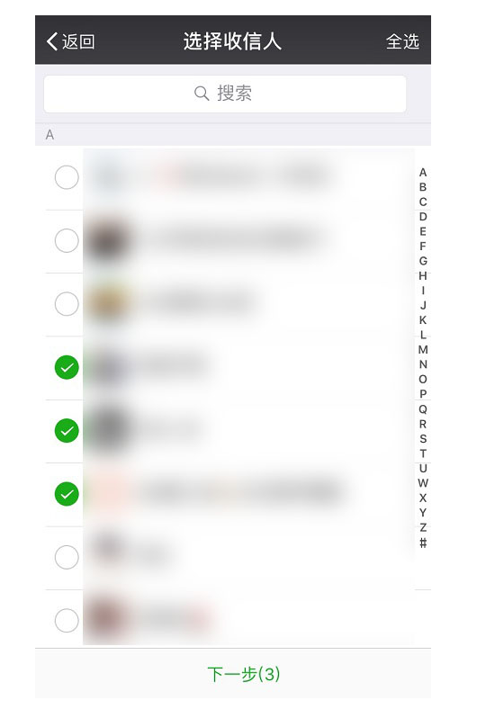 7、勾选想要群发的对象,点击下一步。
