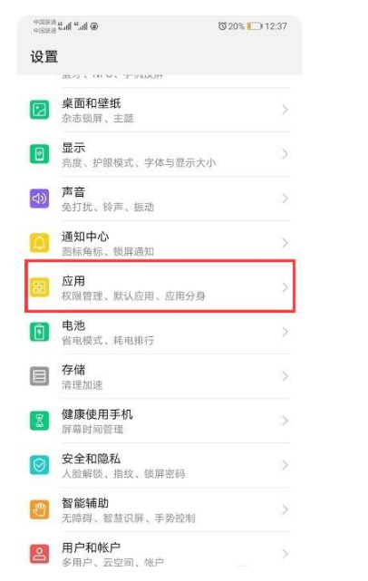 2、进入界面后,找到并点击“应用”。