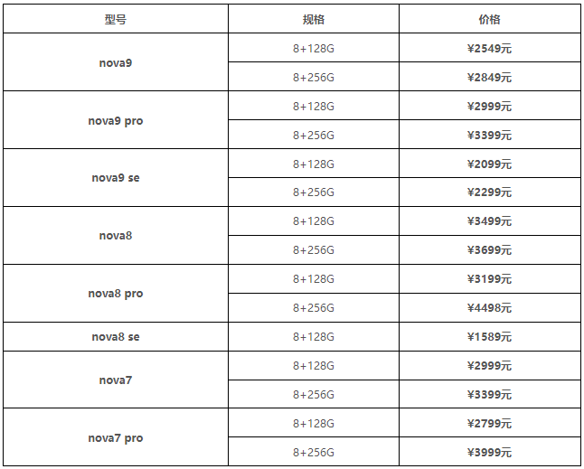 华为手机价格大全