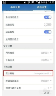 4、选择系统设置--高级设置,找到“下载设置”,可以看到软件对下载文件设置了默认路径。