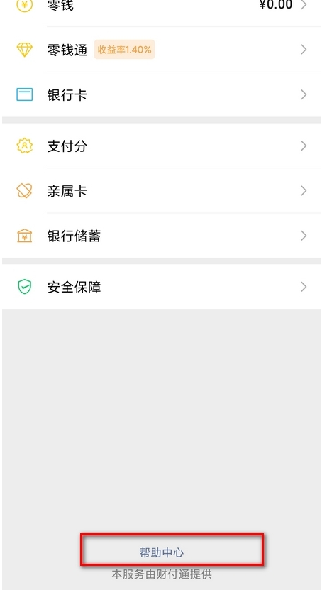 4、进入钱包界面之后,将界面拉到最底端,点击“帮助中心”;