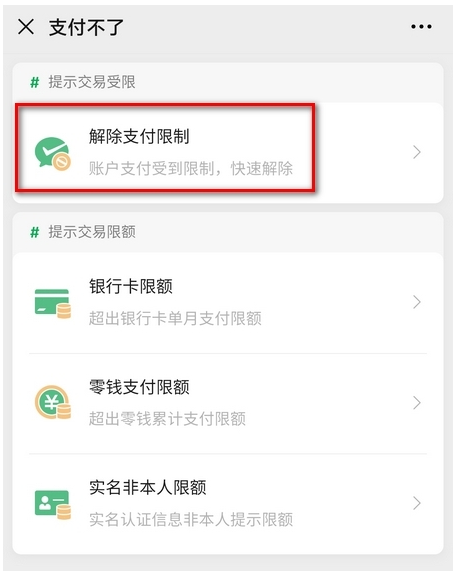 6、进入到支付不了界面之后,点击“解除支付限制”即可;