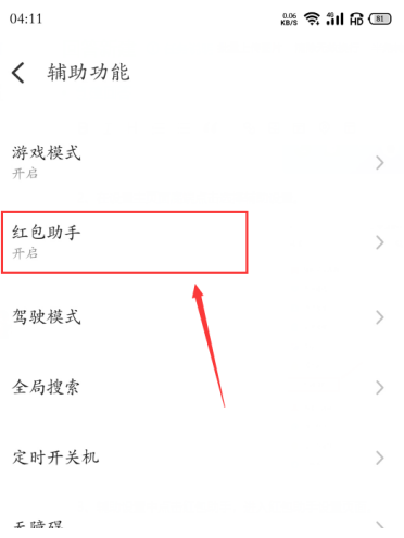3、点击辅助功能中的红色信封助手,进入红色信封助手设置界面。