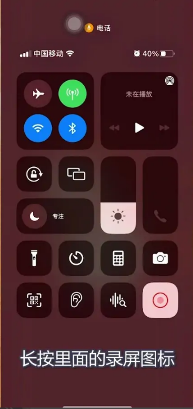 3、进入屏幕录制页面之后,点击打开下面的麦克风,打开以后苹果手机通话即可录音。