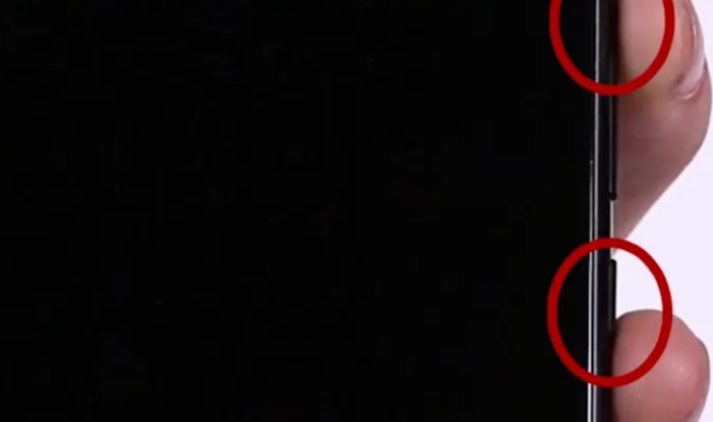 然后同时长按电源键和声音键。