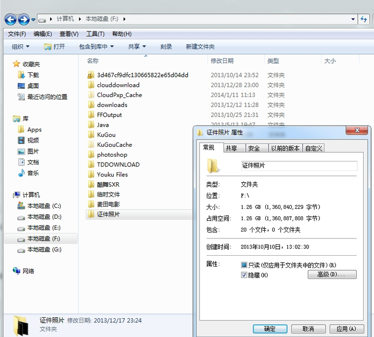 1、找到需要加密的文件夹,右击选择“属性”打开,勾选“隐藏”;并选择“将更改应用于此文件夹、子文件夹和文件”,然后确定,此时文件夹就已隐身了。