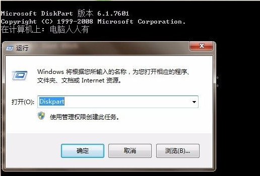 首先点击电脑桌面的开始→运行→输入:Diskpart 点击确定打开CMD。
