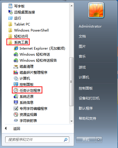 Step1:点击“开始”,在所有程序中选择依次“附件——系统工具——任务计划程序”,点击“任务计划程序”
