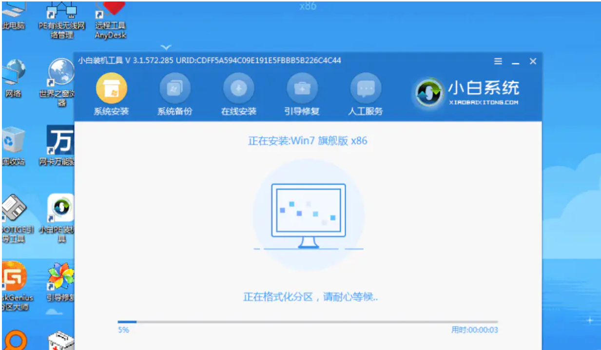 5、进入pe系统之后小白会自动帮助我们安装系统,我们耐心等待即可。