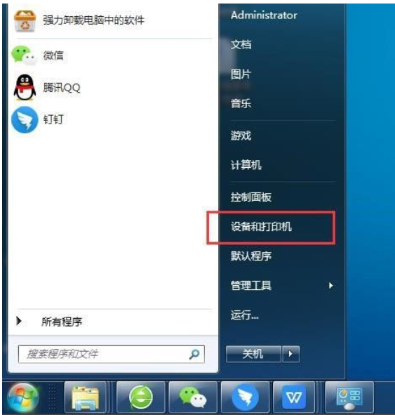 1、点击电脑页面左下角的“开始”按钮,点击页面中的“设备和打印机”打开。