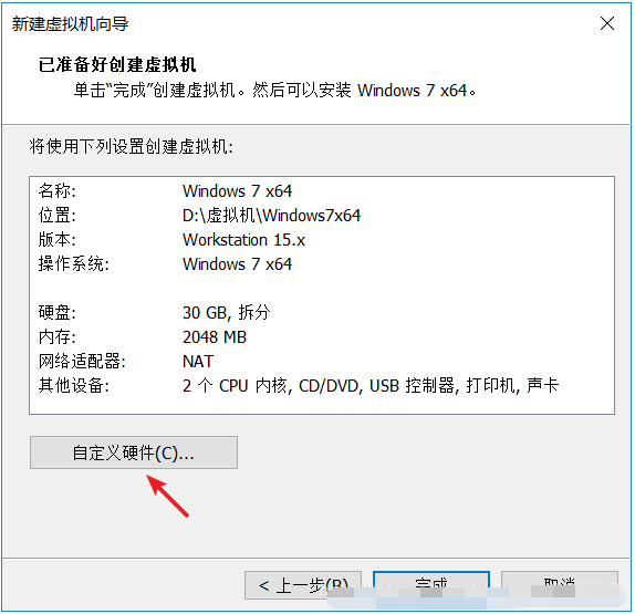 10、默认,点击下一步。点击自定义硬件,检查一下。