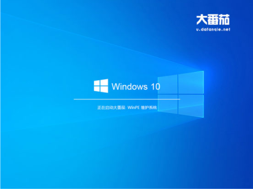 2、正在启动大番茄Win10PE维护系统,如下图: