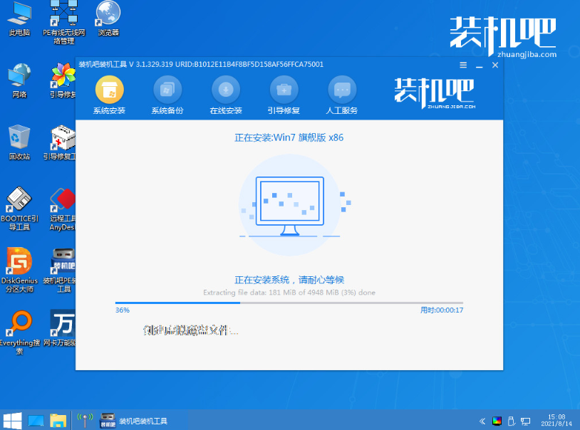 打开装机吧一键重装系统制作u盘启动盘重装系统,这样可修复win7重装系统死机打不开怎么办的问题,等待系统重启安装即可。
