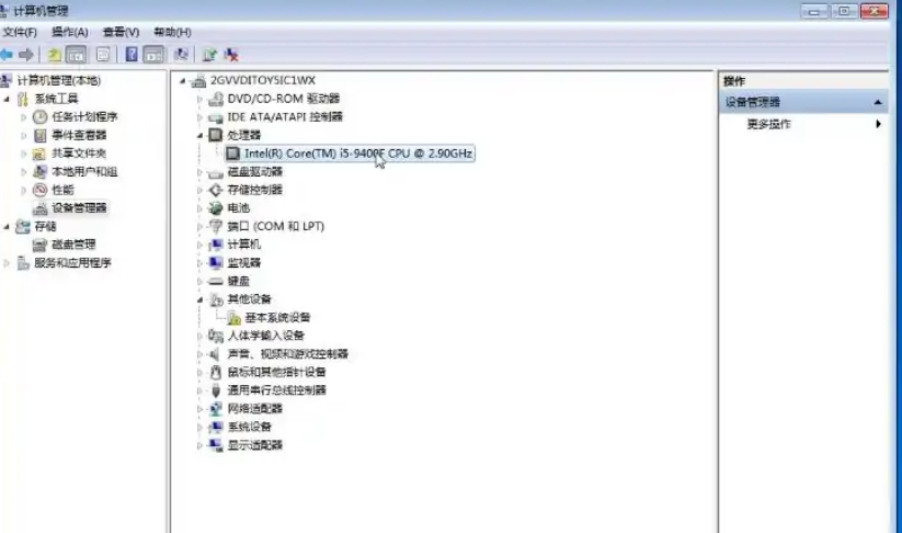 3、想要看详细的配置资料可以继续点击选择左侧的“设备管理器”。