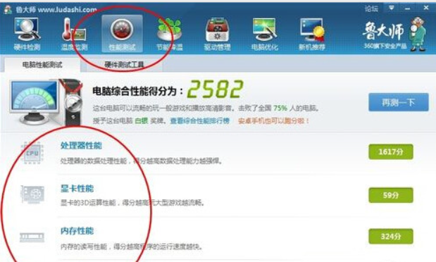 5.也可以借助鲁大师软件进行电脑性能测试;