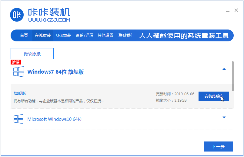 使用咔咔装机工具在线一键重装系统win7: