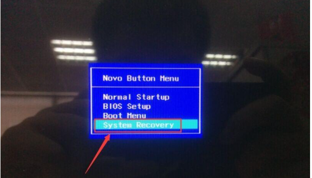 1、我们在关机状态下按Novo键(或者使用牙签或针顶一下Novo孔),启动进入Novo Button Menu页面,选择“System Recovery”按回车键即可。