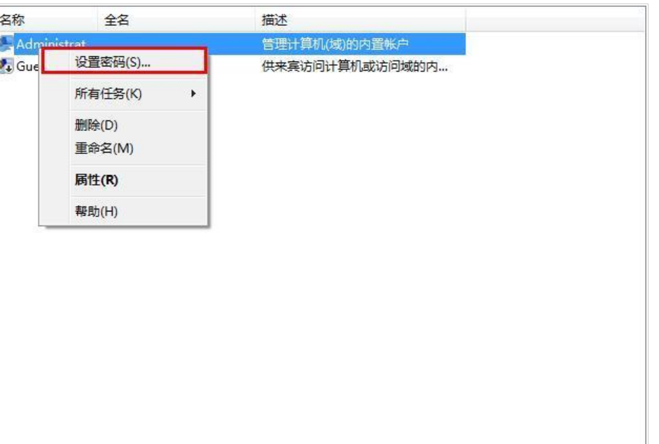 4、打开本地用户和组选项中的用户文件夹,选择“设置密码”选项就可以设置新密码了。