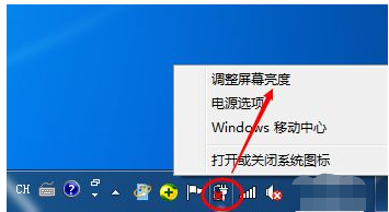 3、我们也可以用鼠标右键电脑右下方的电源图标,在弹出的菜单中,单击“调整屏幕亮度”,如图所示。两种方法都可以用。