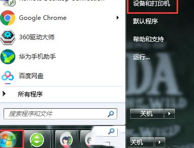 1、win7打印机无法正常打印,首先点击【开始菜单】,勾选【设备和打印机】。
