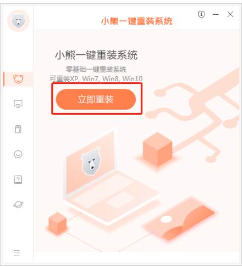 1、打开小熊一键重装系统工具,点击“立即重装”进行重装第一步。