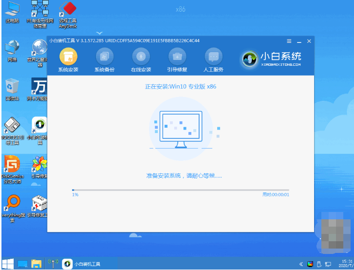 5.进入PE系统后,Windows系统会自动部署安装。我们只需要耐心等待。