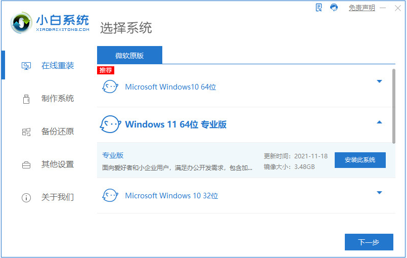 1、下载打开小白一键重装系统软件,在界面上就可以看到windows11系统的安装,如下图所示。