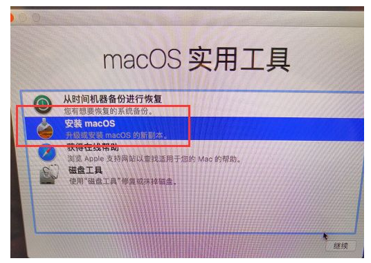 6、关闭“磁盘工具”,开始安装苹果系统,选择刚刚抹掉的那个盘,等待重启电脑