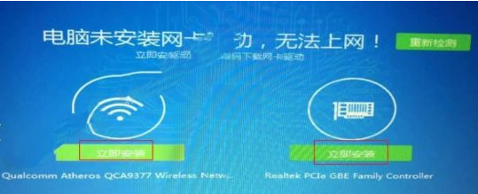 3)分别点击“立即安装”(左边是无线网卡驱动,右边是有线网卡驱动),安装完成即可联网。