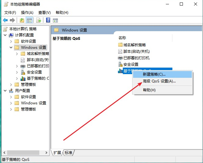3、右击“基于策略的Qos”,选择“高级Qos设置”进入。
