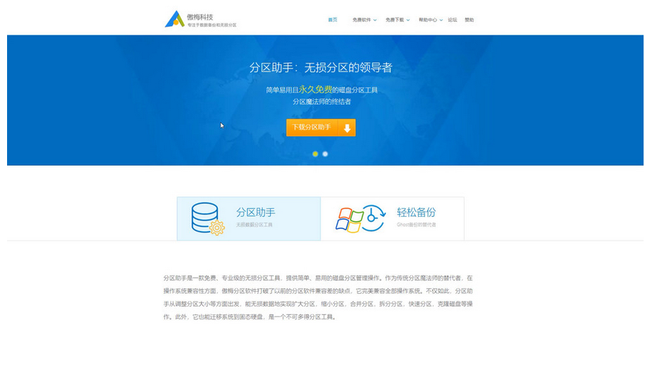 1、首先下载并安装系统迁移软件,部分固态硬盘会自带迁移软件,但是只适用于自家的产品。我们使用的是第三方《分区助手》这款软件,大家可以自行到官网下载,安装完成后。