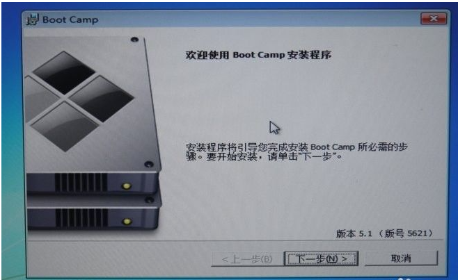 4、插入Windows 安装U盘或者光盘到电脑,再次启动Boot Camp助理,选择安装Windows 7 或者更高版本。