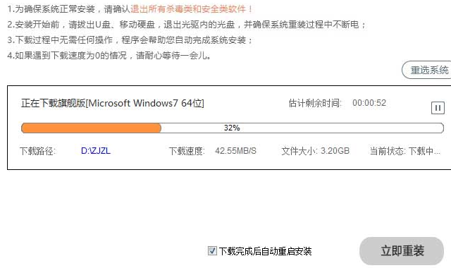 总结:下载系统,检测环境,点击下一步重装完成。