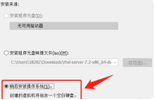 3.我们先定义硬件,再在模拟机中进行系统的安装,所以在这里选择稍后再安装系统。