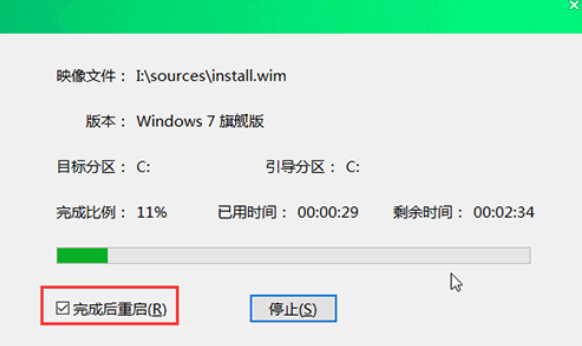 3、进入重启阶段,移除U盘,重启后电脑会自动进入系统部署阶段,无需操作,过程耗时较久,请耐心等待。