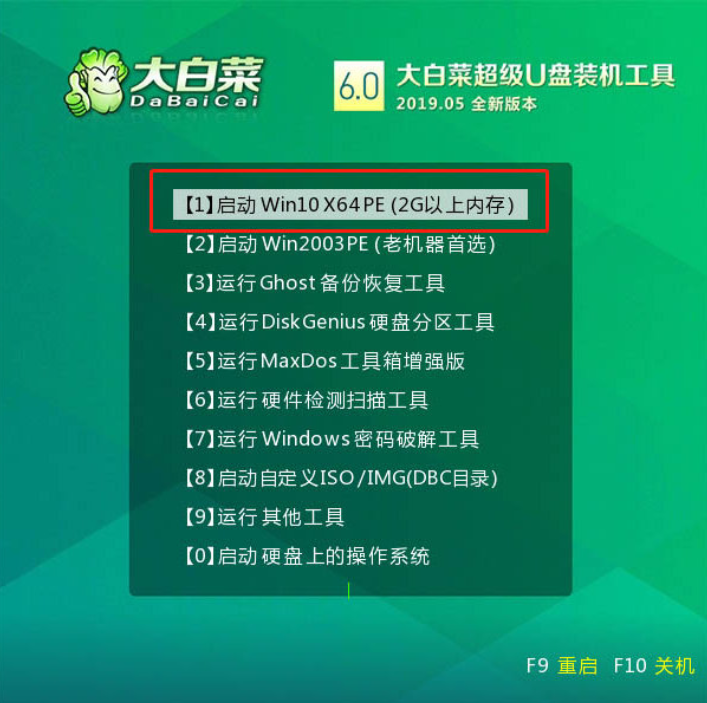 2、选择【1】win10X64PE(2G以上内存),回车进入winpe桌面。