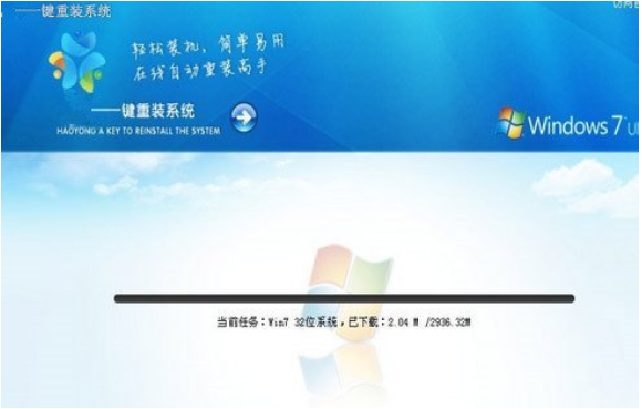 2、选择window操作系统,等待下载完成。下载好后,软件就自动重启电脑。