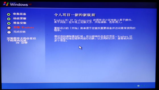 10、镜像文件拷贝完成之后,点击重新启动计算机脑,开始进行对windiows xp系统的基本配置。