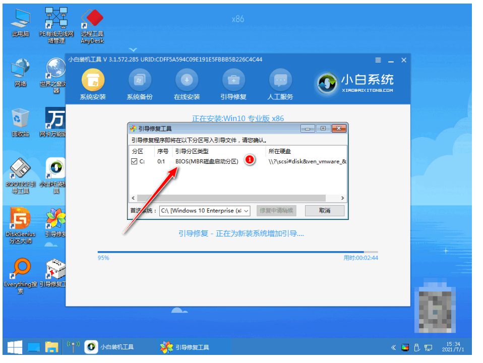 5、系统进入自动安装程序,只需耐心等待,出现引导修复工具页面,在C盘前打勾,点击确定。