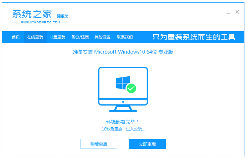 1、首先将系统之家重装软件下载好后并打开。选择在线重装系统。